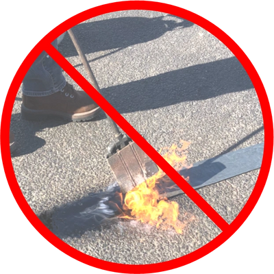 QC Cold Applied Asphaltic Tape – DOES NOT REQUIRE HEAT!! DOES NOT REQUIRE A TORCH!! Preparation is limited to preparing a clean and dry pavement (when installing over cracks “best practice” recommends prepping the crack with a suitable filler). Quickly and Easily, remove the white release liner, roll the material out and apply weighted pressure to the top side on the wear mat, by foot, hand, or suitable device; the self-adhering asphaltic mastic is now bonded. That’s it, the pavement fault is permanently sealed. QC is a no heat, no flame, no propane torch, no equipment required pressure only installation. Installation of: Peel – Place - Press 50 lineal feet / 15.24 M roll of self-adhering asphaltic mastic tape, can be accomplished in under 5 minutes (after prepping / cleaning the surface).